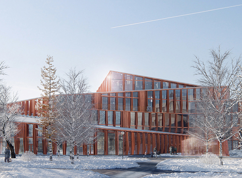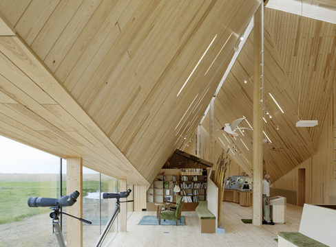 - I det låga, öppna landskapet fungerar byggnadens silhuett som ett landmärke för regionen.