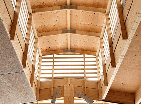 Trästrukturen är med sin värme och mjukhet också en blinkning till saltets grova och hårda yta, och arkitekterna hade såväl regionens jordbrukslandskap som skogskaraktär i åtanke vid utformningen. Tre av lagerbyggnadens sidor är nedtill täckta av KL-träskivor som lutar mot triangelformade stöd av KL-trä. Vart fjärde triangelstöd kompletteras av limträpelare som sträcker sig upp mot de kraftigt dimensionerade takstolarna av limträ.