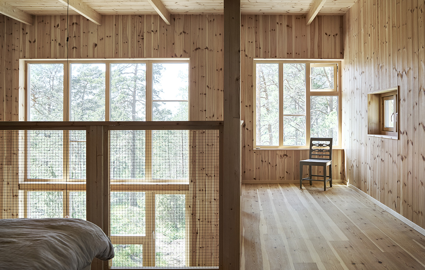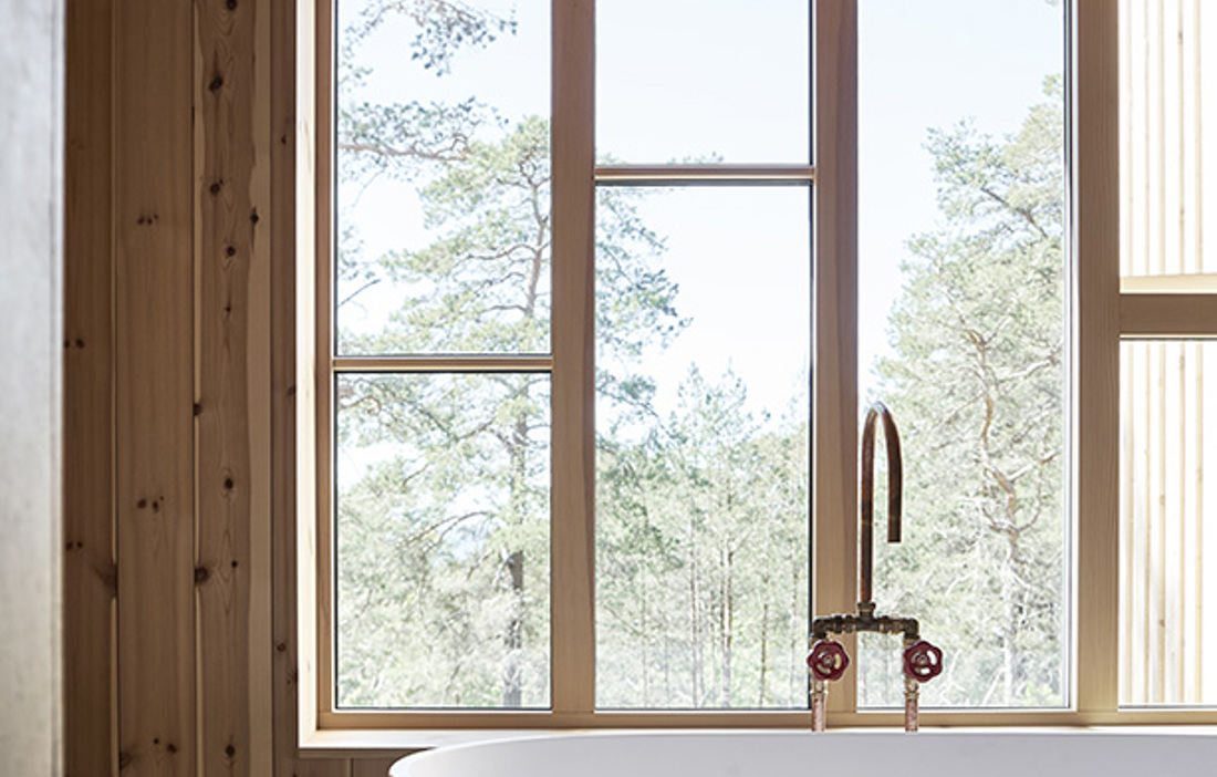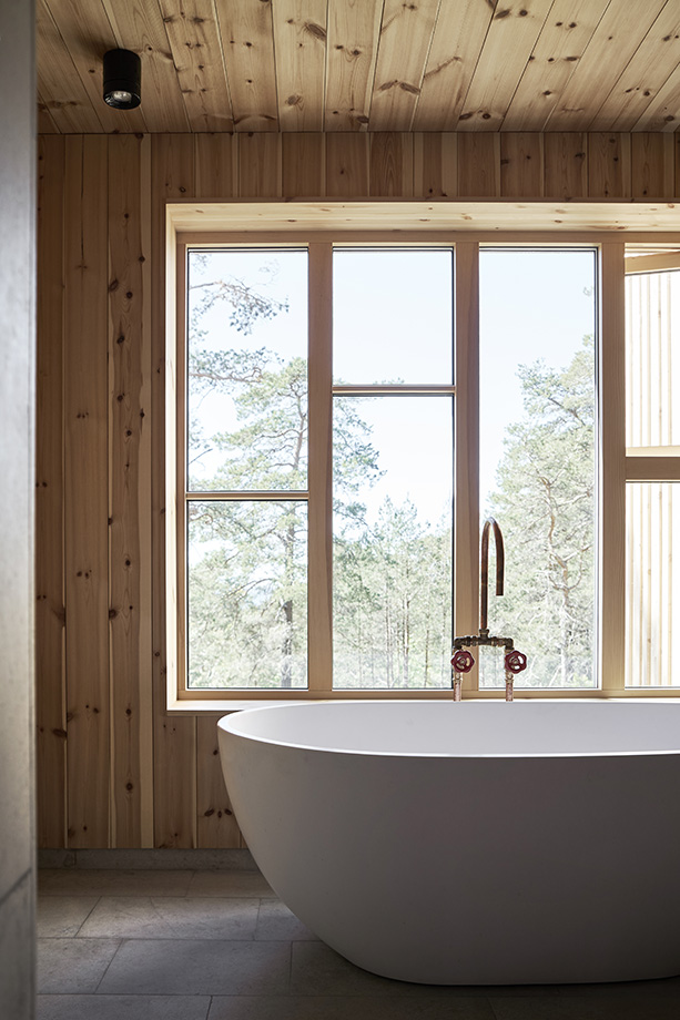 På egen hand eller med andra – överallt härskar ändå den magnifika vyn mot tallarna och vidare mot Östersjön. Särskilt i den sociala delen vars fasad domineras av en storslagen fönstersättning.