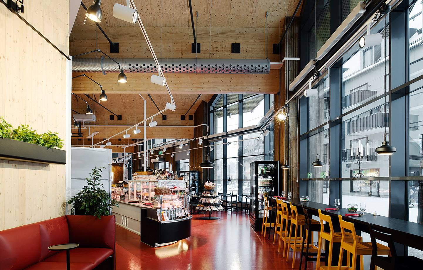 – Det jag tror att Sigtuna lyckades med är mixen. Vi vill inte bara ha en stor matbutik, utan att i stället blanda mat med upplevelser och shopping, jag tror att blandningen är otroligt viktig. Det blir en marknadshall eller saluhall, och det är lite tillbaka till rötterna. Man vill träffas i ett större sammanhang. Man vill äta, umgås och göra sin yoga. I Sigtuna skapas en helhet för den nya, lilla staden som byggs upp, och trä skapar en varmt välkomnande känsla som bjuder in särskilt under mörka kvällar, säger Andreas Lebisch.