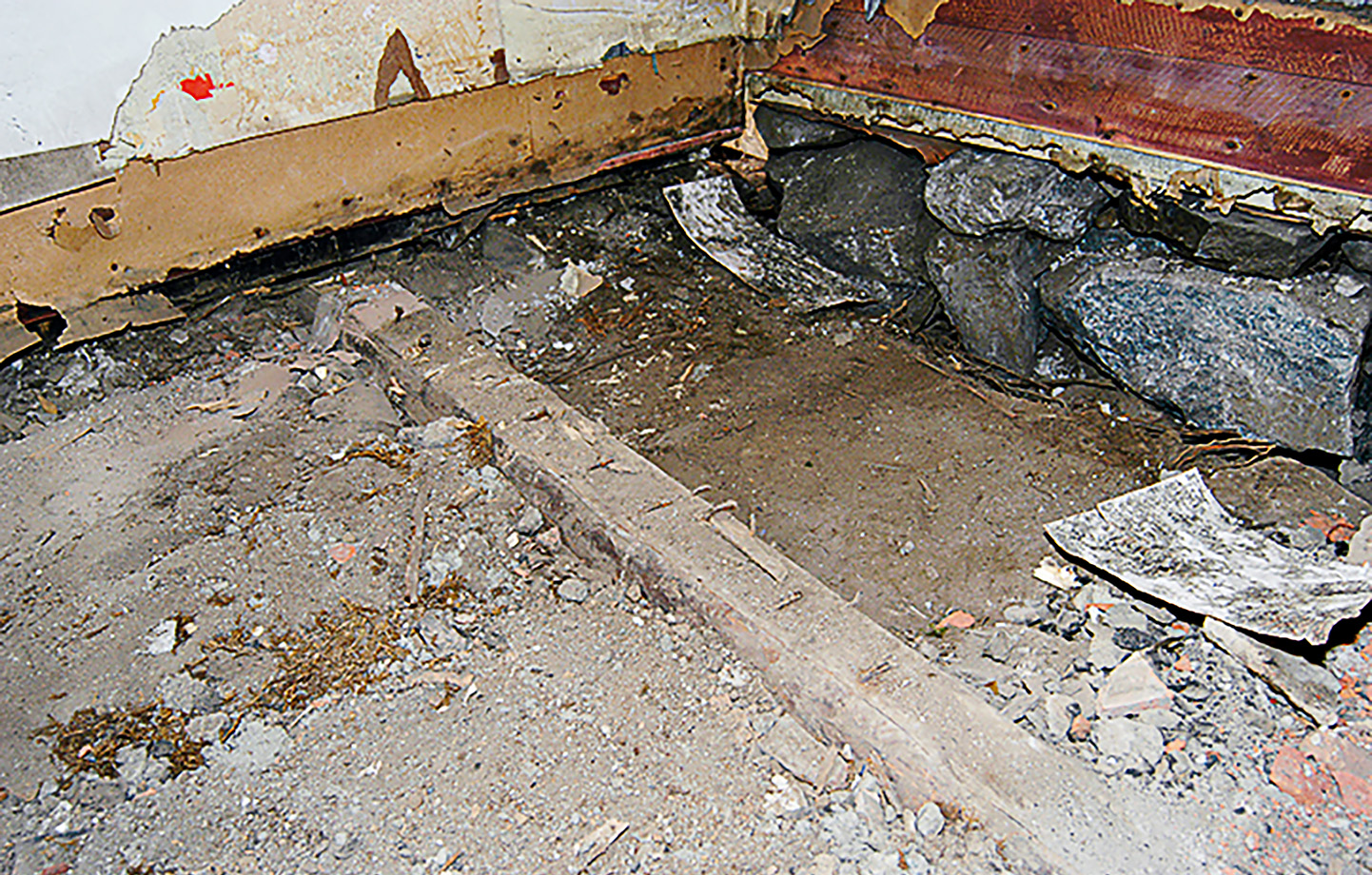 I Rigot Collective Dwelling centre kan vi se mycket av denna gamla grundläggningsteknik i en modern tappning. Byggnaden står på »hörnstenar« i form av träpålar. Utvändig isolering i stället för torv, vattenavvisande duk i stället för näver, bättre dränerande material, men i grunden samma byggtekniska principer som i dåtid. Trä i mark är inte något nytt och inte heller så konstigt som det låter. Rätt hanterat håller det över tid. Ta bara en titt på träpålen vid Helgeandsholmen från 1250-talet (se bild). Det finns många exempel på hur träpålar har kunnat fungera som en långsiktig och beständig grundkonstruktion. Så länge pålen är placerad under grundvattennivån kan rötsvampar inte angripa träet, eftersom de som tidigare nämnts behöver syre för att överleva och inget syre når hit.