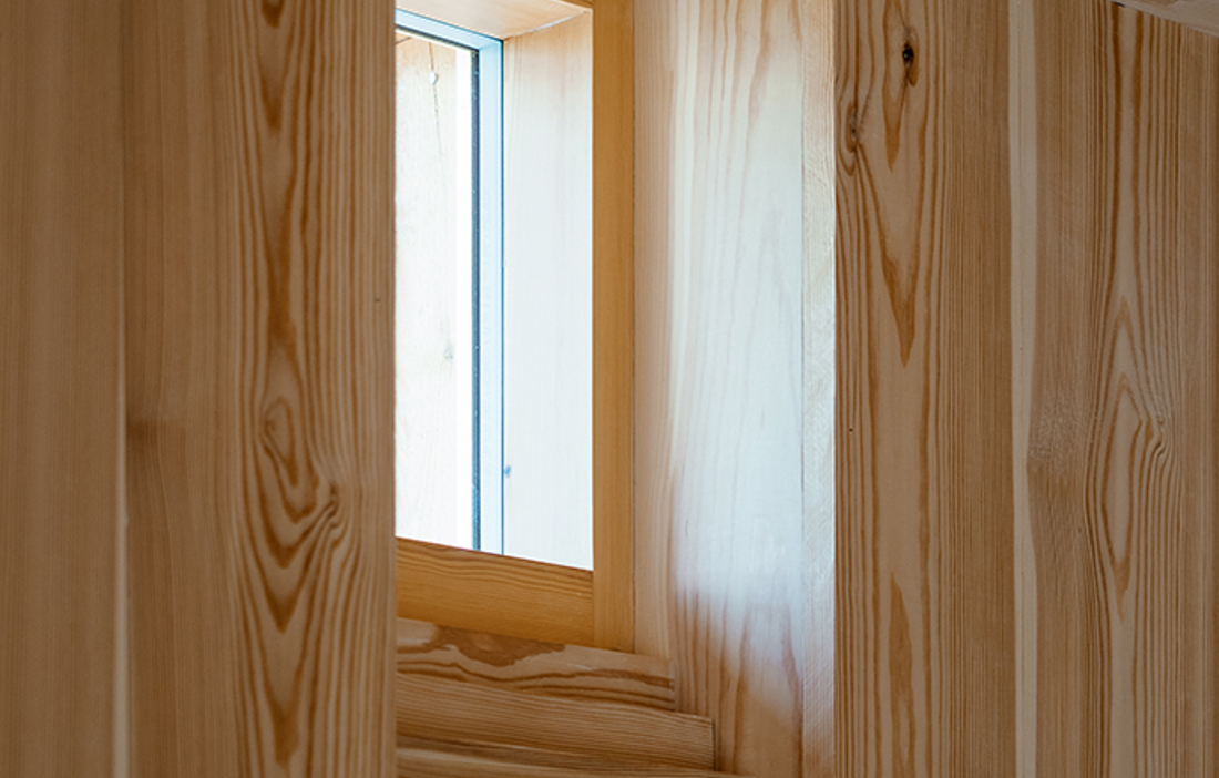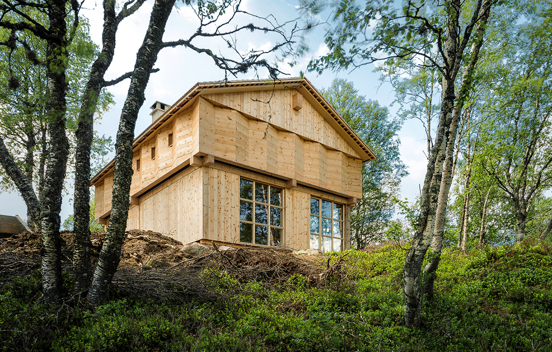 Tillsammans med snickarteamet från firman Kjernebygg anpassade han gamla hantverkstekniker till dagens förhållanden och byggkrav – och vred dem ett varv till. Resultatet: en byggnad som växt fram ur traditionen på samma gång som den har ett samtida formspråk.