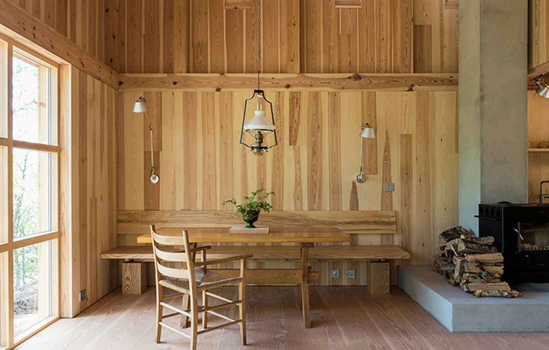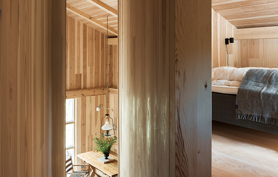 – Utgångspunkten var att skapa en atmosfär som om du vore inne i en timmerstock, med den där varma tyngden som trävirke ger.
