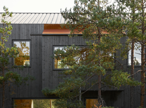 Dessutom släpper man in, respektive blockerar, solens strålar med hjälp av vertikala och horisontella trälameller på fasadernas alla utsidor. Naturligt ljus kan belysa utrymmena och samtidigt begränsa att det blir för varmt.
