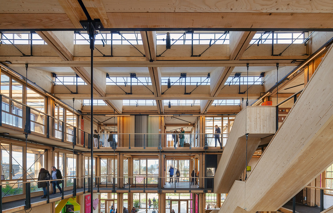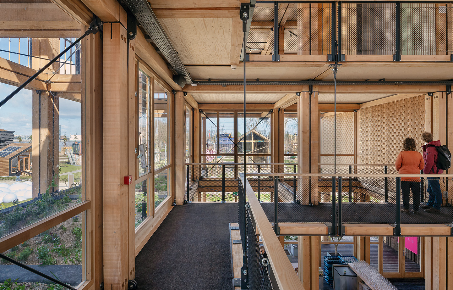 Förutom koldioxidutsläpp och klimatförändringar kämpar Nederländerna även med höga utsläpp av kväve från jordbruk, transport och industri, vilket hotar landets natur och biologiska mångfald. Därför var trä som grundmaterial till byggnaden ett självklart val. Stommarna kunde prefabriceras, vilket gjorde att utsläppen inte belastade regionen. Dessutom är konstruktionen lätt, vilket ger lägre utsläpp vid transport och byggnation eftersom man kan använda mindre kranar för lyft.