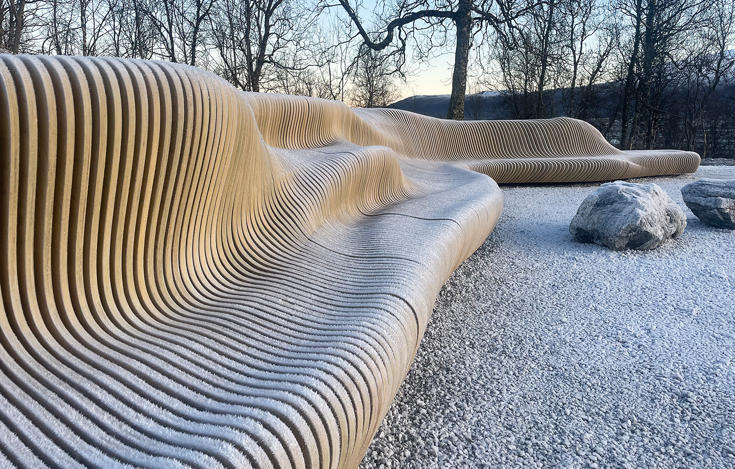 Svenskt Trä var på plats när utställningen Ung Svensk Form invigdes i Skellefteå på Sara Kulturhus, i slutet av maj. Vi passade då på att prata med Sara Kulturhus vd Anna Jirstrand Sandlund om hennes upplevelser av att arbeta i ett hus helt byggt av trä.