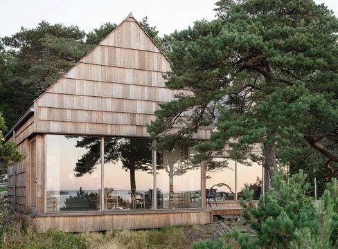 ARTIKEL Ekspånen som i prydliga rader löper runt huset i norska Saltviga bidrar inte bara till att det vackert smälter in i naturen. Det är också ett praktexempel på att trä som skurits bort och blivit över kan få en huvudroll någon annanstans, allt i kombination med genomtänkta detaljer.