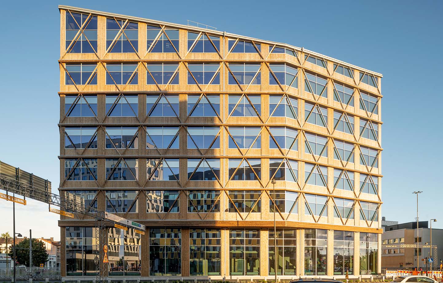 ARTIKEL I Örebro utmanar en ny kontorsbyggnad det traditionella sättet att bygga. Byggnaden är av trä och med den synliga konstruktionen som en viktig del av uttrycket.