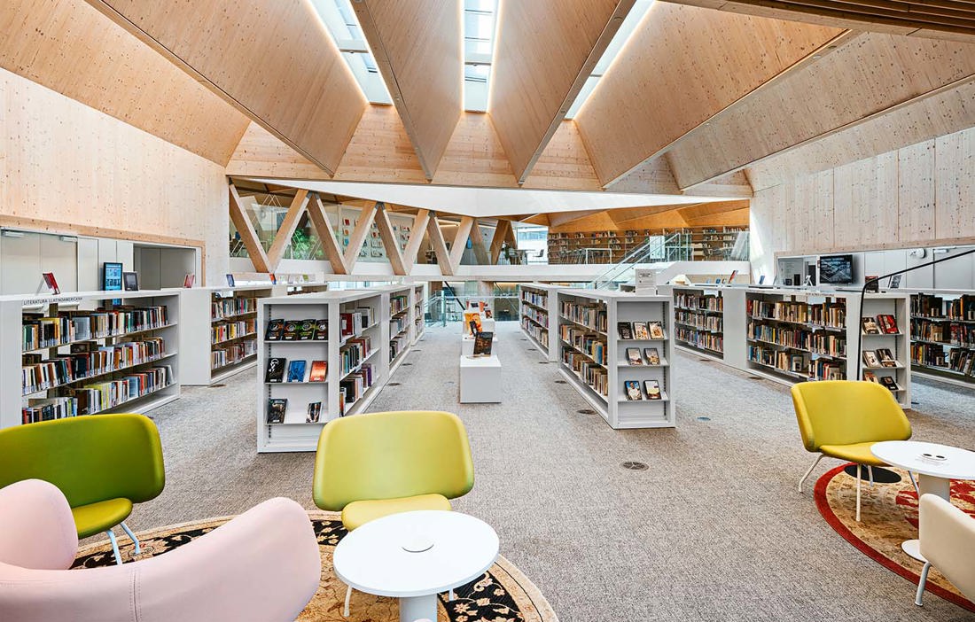 – Allt bygger på en kontinuitet i upplevelsen och i rummet. Vi har till exempel lagt barnbiblioteket i ett eget område så att man kan läsa högt för barnen utan att det stör andra rum.