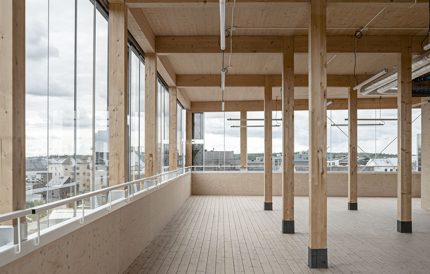 – Vi ville bygga med ett så beprövat system som möjligt och fastnade för ett massivträhus med utfackningsväggar. Det är gediget, stabilt och lätt att räkna på. Vi såg ingen anledning att göra hisschakten i betong och valde även bort pågjutningar i betong. Det finns också inslag av limträpelare där man inte behöver massivträ, säger Ola Broms Wessel.