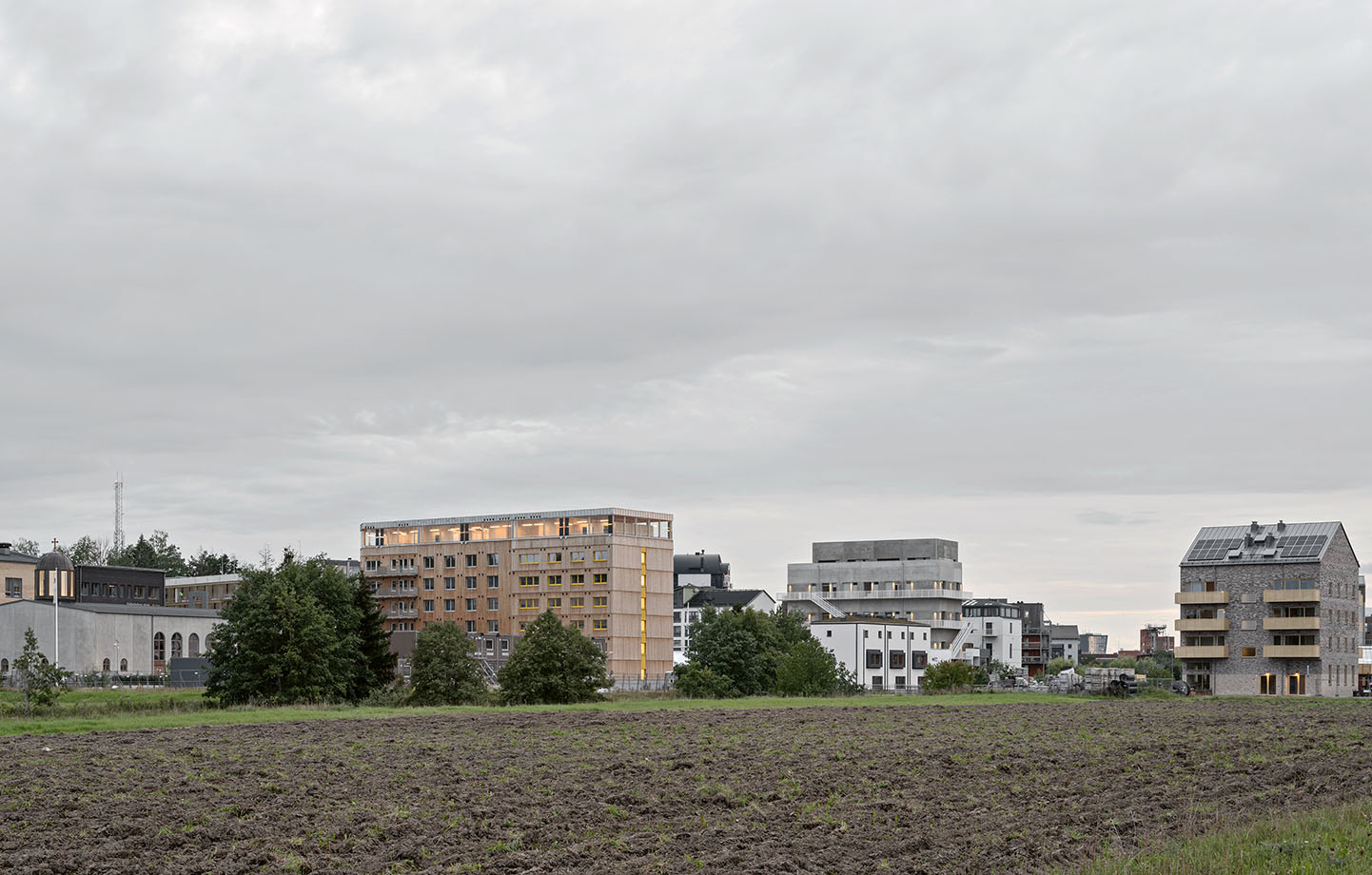 Flerbostadshuset Generatorn i Vallastadens sydöstra hörn är byggt med en bärande stomme av korslimmat trä, KL-trä, och består av tre separata fastigheter, där studentboende kombineras med trygghetsboende. Ett av utvärderingskriterierna var just användandet av träbyggnadsteknik, och markanvisningstävlingen bakom Generatorn, som stod färdig 2023, vanns av arkitektkontoret Spridd år 2019. Inför tävlingen bjöd Spridd in kontoren Septembre och Secretary till ett designsamarbete.
