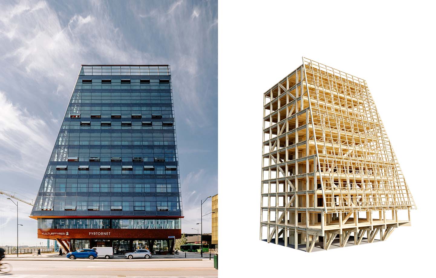 Den omfattane träkonstruktionen i kombination med innovativa tekniska lösningar gör kontorshuset Fyrtornet till ett exempel på storskalig arkitektur med lågt klimatavtryck. Det är en av de första byggnaderna i Malmö som hamnar under samverkansplanen LFM30:s gränsvärden, i linje med Parisavtalets mål om nettonoll koldioxidutsläpp till 2030.
