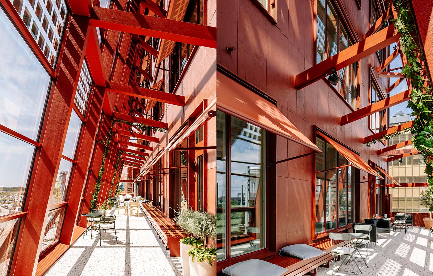 – I den ursprungliga tävlingsbriefen fanns ett önskemål om att få in grönska i hela området. Tack vare dubbelglasfasaden har vi kunnat skapa unika terrasser med ett Medelhavsklimat. Tanken är att hyresgästerna ska kunna använda dessa gröna rum både för avkoppling och som ytor för odling, säger Gustaf Wennerberg.