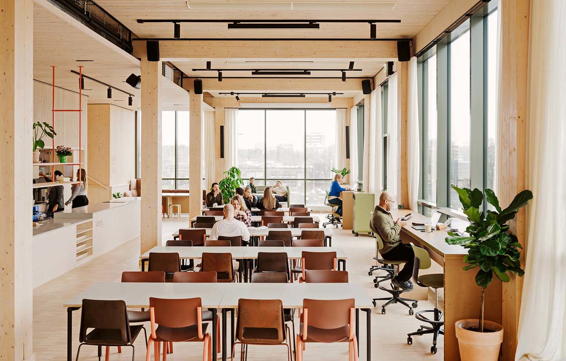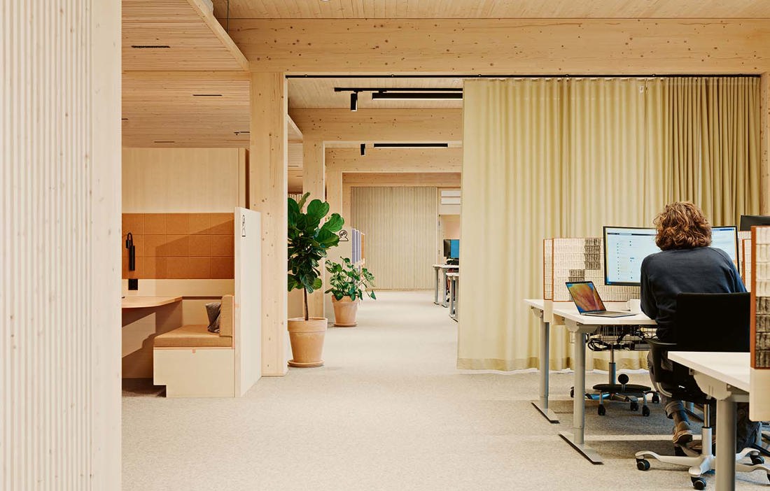 – Tanken var att vi skulle ersätta det fotavtryck med jord som vi tagit bort och flytta upp det till taket. På så sätt stjäl vi inget från naturen, utan flyttar bara på det. Även invändigt finns gott om planteringar och gröna växter. Det finns mycket forskning som visar att livskvaliteten ökar när man omger sig med naturmaterial som trä och gröna växter. Bland annat kan man se effekter som att stressnivån sjunker, sjukfrånvaron minskar och att koncentration och fokus ökar, säger Jørgen Tycho.