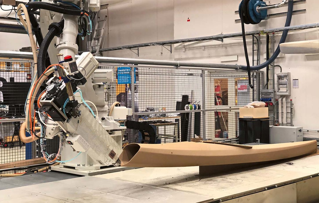 För Melker of Swedens kajakprototyp utvecklade RISE tillsammans med involverade parter en kombination av olika processteg där samma robot genom ett verktygsbyte går från att skriva ut produkten till att sedan fräsa de ytor som önskas. På så sätt kan de nå mycket högre krav på ytfinhet och toleranser.