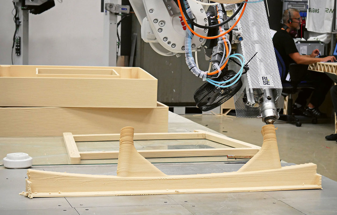 – Vi hade ett samarbete med ABB om att undersöka möjligheten att använda industriella robotar för 3D-printing. Vi kopplade ihop en befintlig ABB-robot med en extruder (se faktaruta) och började experimentera. Vi ville utforska teknikområdet runt 3D-printing för att kunna skriva ut större objekt och med högre hastighet än traditionella FDM-system, säger Seyed Hosseini, ansvarig vid Applikationscenter för additiv tillverkning hos RISE.