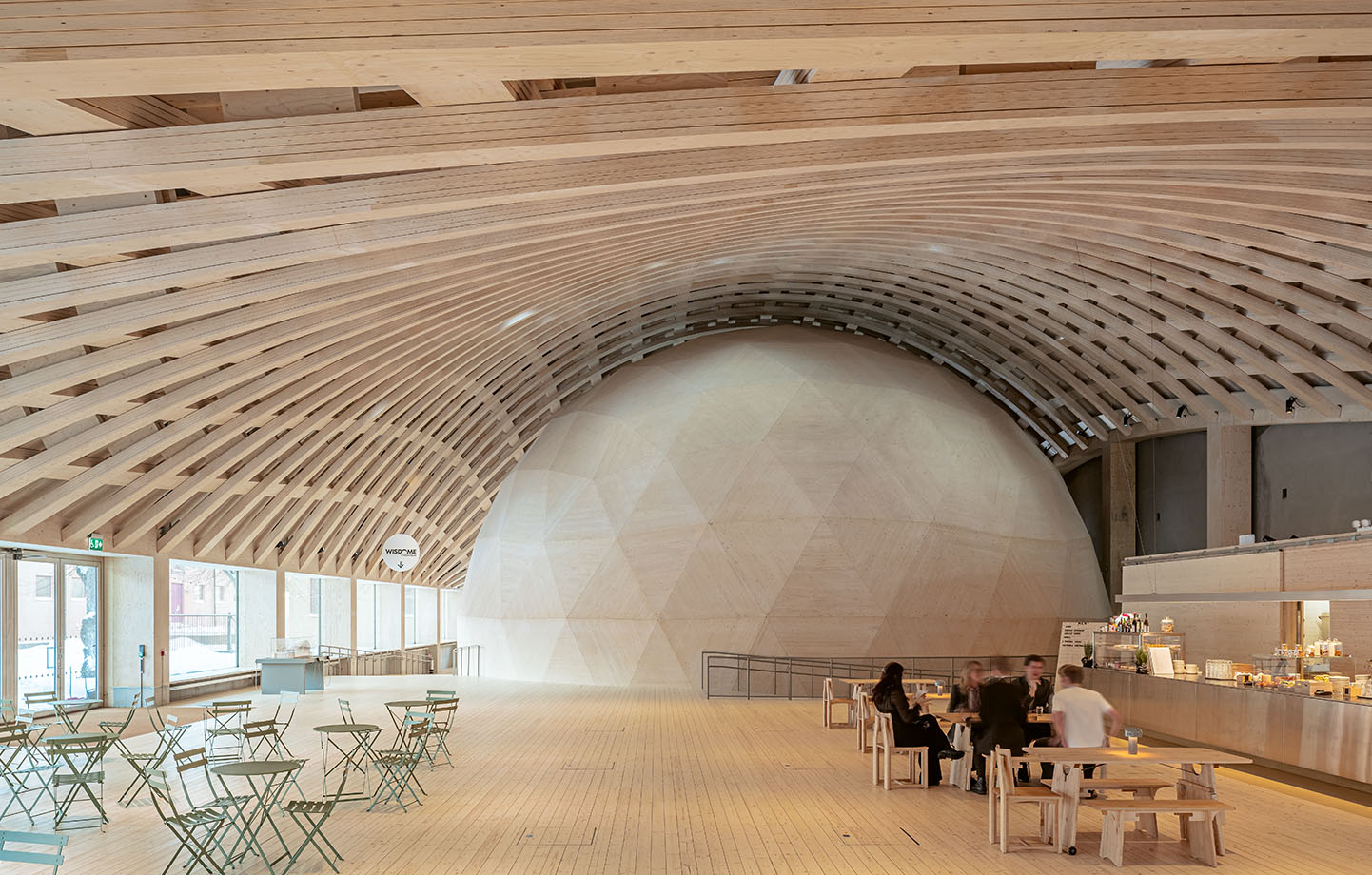 Med en kombination av av limträ och KL-trä, knep Tore Lagerquist och Simon Viklunds paviljong förstaplatsen i tävlingen “Nya ögon på trä”.