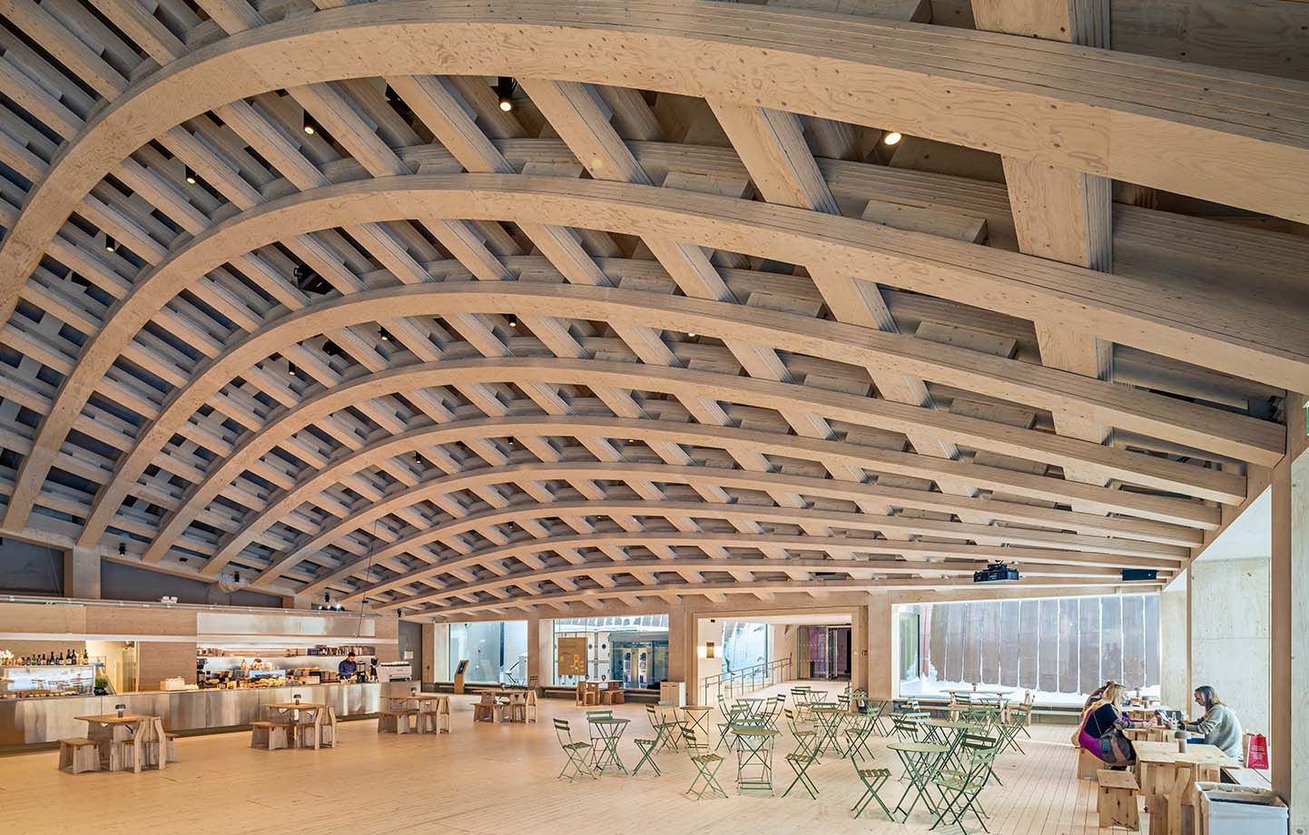 – Eftersom vi var delaktiga i projektet redan från idéstadiet kunde vi hitta ett innovativt sätt att förverkliga byggnaden med KL-trä och LVL-element i våra standarddimensioner. Det är roligt att det är en publik byggnad som ger alla möjlighet att ta del av den fantastiska konstruktionen och på plats uppleva vad man faktiskt kan göra med trä, säger Jessika Szyber, business development manager på Stora Enso.