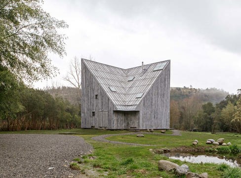 ARTIKEL Tack vare den geometriska formen och den grå ytan smälter det elva meter höga fritidshuset nästan sömlöst in i den chilenska naturen.
