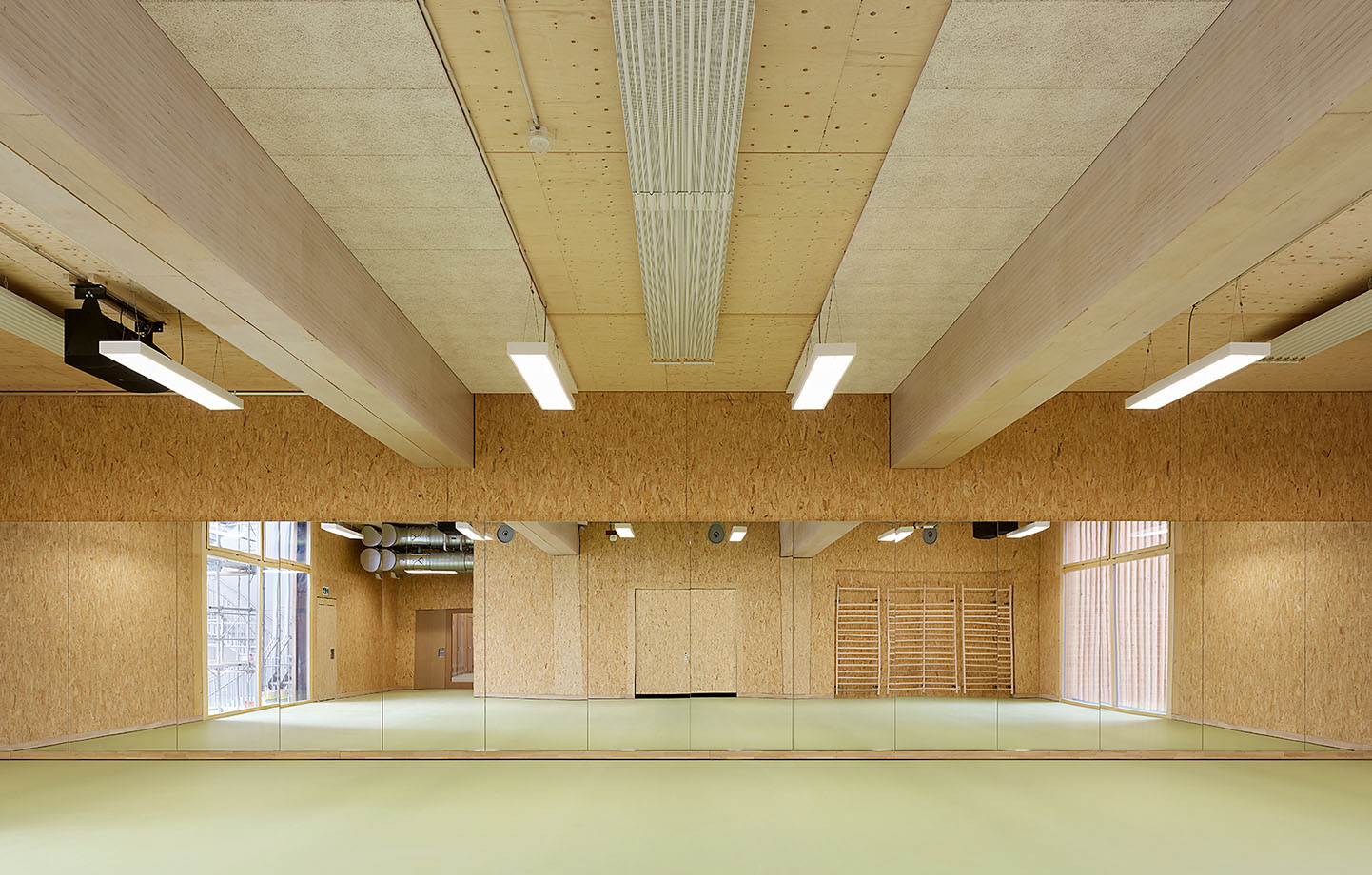 Resultatet blev en byggnad i tre volymer, noggrant integrerad i Zürichs universitetskvarter. Den minsta volymen innehåller de utrymmen som kräver högre komfortnivå, som duschar och omklädningsrum, med hänsyn tagen till termisk komfort och dagsljuskrav. Den andra volymen rymmer idrottshallar i tre plan, designade med stora spännvidder och specifika dagsljusförhållanden – till exempel undviker de fönster i söderläge för att solljus inte ska blända idrottsutövarna. Den tredje volymen är en lång struktur som rymmer förvaring av sportutrustning samt tekniska rum, designad med minimala klimatkontrollkrav.