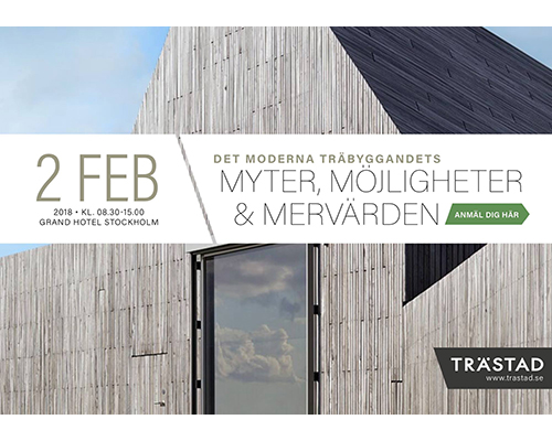 Myter, möjligheter & mervärden Trästad bjuder in till ett heldagsseminarium under temat "Myter, möjligheter och mervärden med modernt träbyggande".