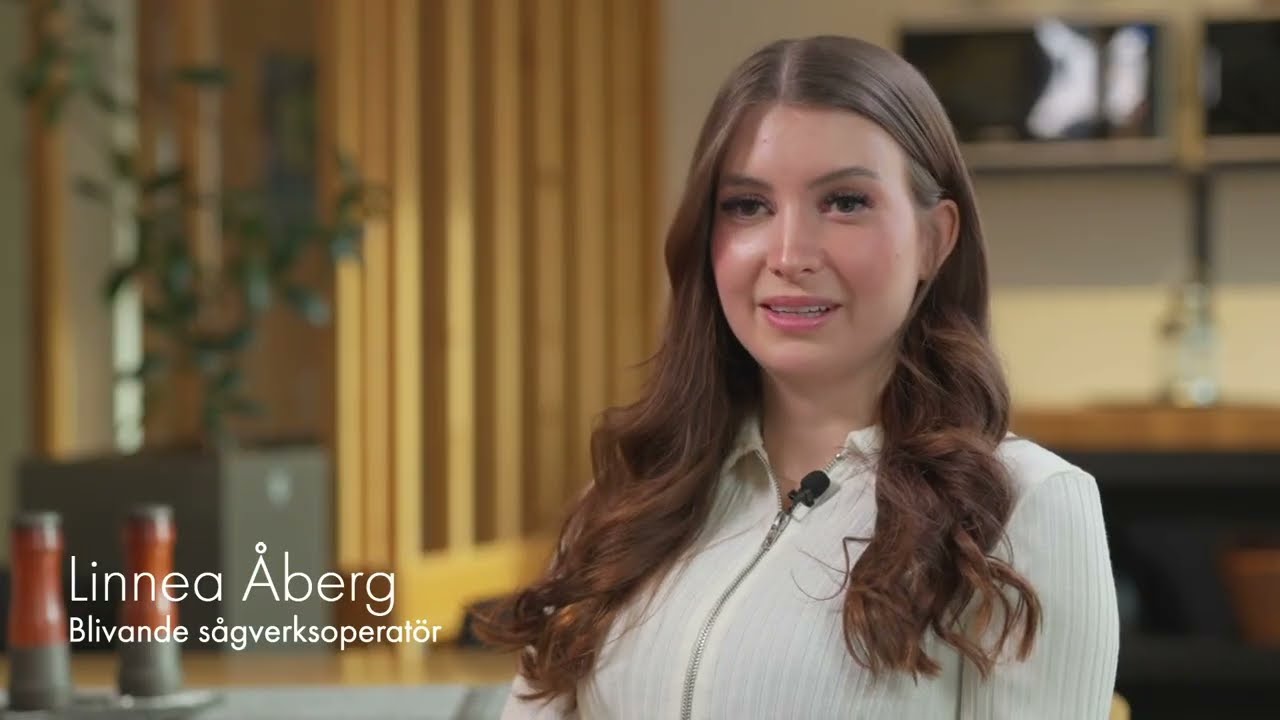Jag går en ettårig heltidsutbildning för att bli sågverksoperatör. Vi har teoretiska lektioner tre dagar per månad och resterande tid är arbetsplatsförlagd. Under den praktiska delen av utbildningen roterar vi mellan olika platser på sågverket, så vi lär oss hela produktionsflödet. Vi är tio veckor på varje arbetsplats och följer då varsitt skiftlag. Det ingår även en del studiebesök så man lär sig väldigt mycket om branschen. Jag gillar variationen och att man får så bra insyn i industrin, det ger en jättebra grund!