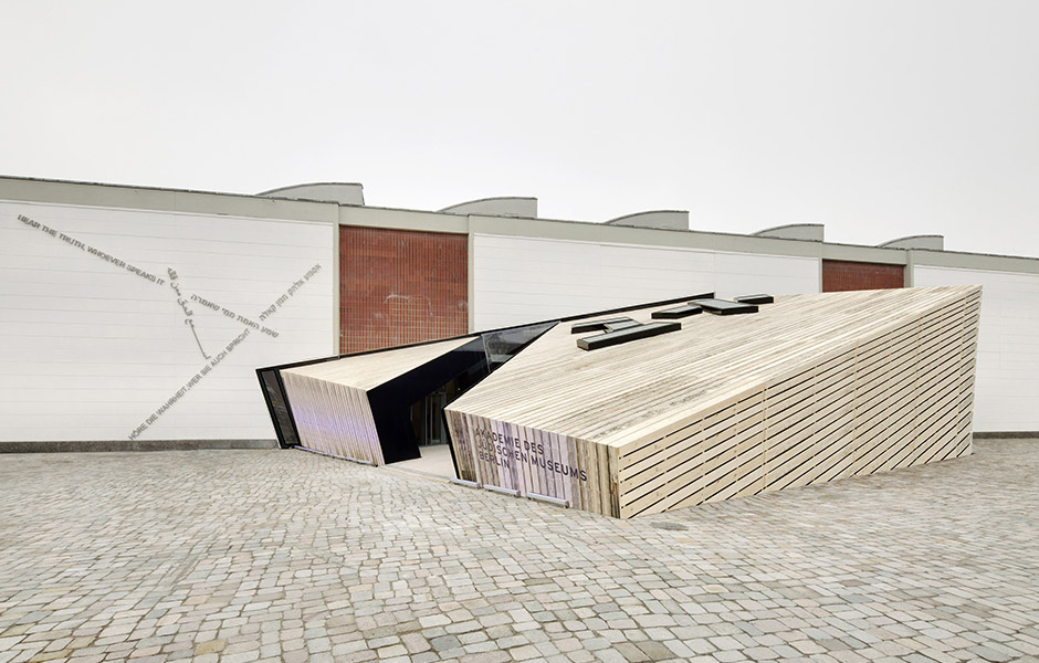 – Vi har använt trä för att det är vackert, intimt och mänskligt. Trä symboliserar något organiskt och byggnaden är likt Noaks ark fylld av kunskap. De här volymerna ser ut som stora fraktlådor och symboliserar ett stycke historia som återvänder till Berlin – de är mer av objekt än byggnad. Vi har vinnlagt oss om att skapa rum mellan volymerna och binda ihop Akademins olika aktiviteter. Vi har även dragit ned på skalan för att det ska passa alla barn som kommer hit, säger Daniel Libeskind.