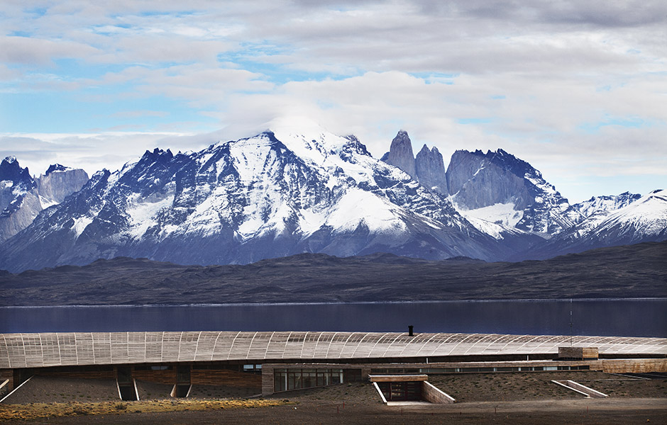 LÄNGST NER PÅ Sydamerikas sydspets, uppdelat mellan Chile och Argentina, ligger Patagonien. Naturen här präglas av stora, öde stäppmarker, bok– och barrskogar, fjordar samt några av jordens största glaciärer – resultatet av kall luft och mycket nederbörd från Andernas västra sluttningar. Mitt i det dramatiska landskapet ligger nationalparken Torres del Paine och det imponerande lyxhotellet Tierra Patagonia. I en sluttning, precis där tundran möter Sarmientosjön, hukar den låga träbyggnaden, blickandes ut över landskapet. ”Som en fossil, ett förhistoriskt djur, strandat intill sjön, som något sprunget ur Charles Darwins teckningar” som hotellets arkitekt Cazu Zegers själv har uttryckt det. Det stora hotellet smälter samman med omgivningen och skapar en mjuk linje i det karga landskapet.