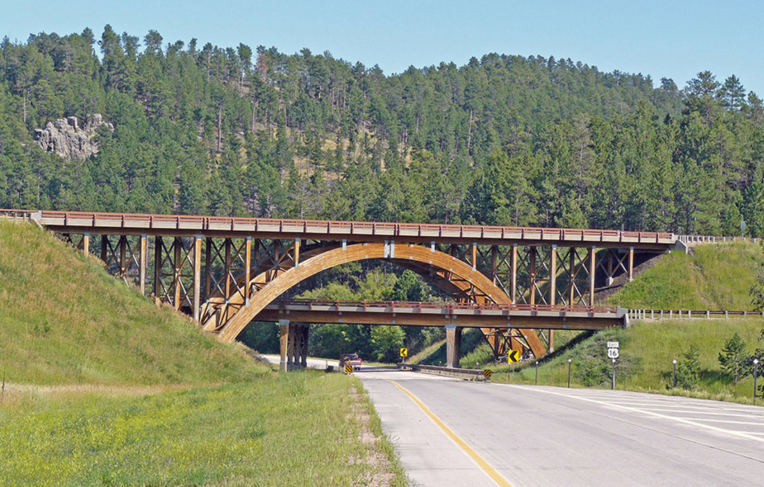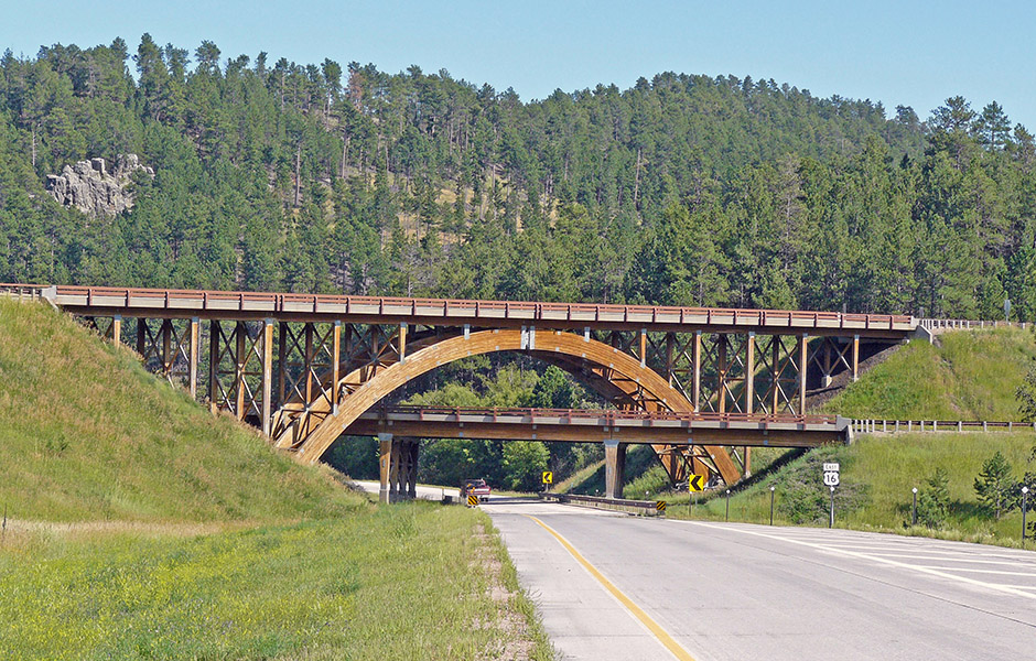 Under hösten 2013 deltog Peter Jacobsson i en internationell träbrokonferens i USA. Forskare och branschfolk från hela världen samlades i Las Vegas för att diskutera byggteknik och beständighet. Han bidrog själv med att berätta om bygget av Älvsbackabron, en snedkabelbro för gång- och cykeltrafik över Skellefteälven. Konferensprogrammet illustrerades med en bild från den imponerande träbron i två plan som finns i Keystone Wye, en korsning mellan vägarna us 16 och us 16a i South Dakota. Den övre bron är 88 meter lång och bågens spännvidd är 49 meter.