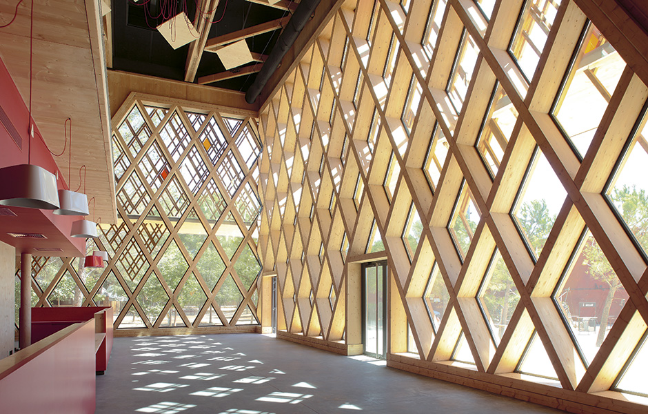 – Den bärande strukturen och väggarnas rejäla paneler har ett naturligt brandmotstånd tack vare dess grovlek och behövde inte behandlas, säger Philippe Bonon.