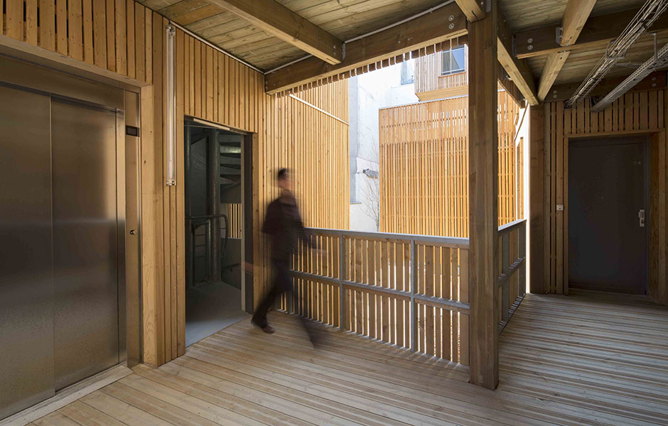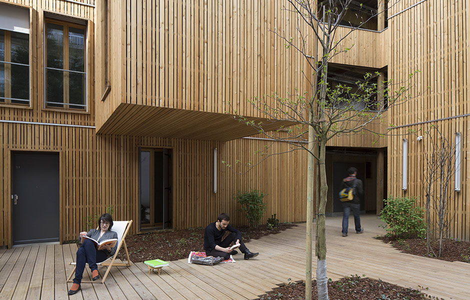 I FRANKRIKE, VARS arkitekturhistoria till stor del är uppbyggd av stenmaterial, har det blivit allt vanligare att uppföra byggnader i trä. När KOZ Architectes gav sig på att rusta upp ett gammalt arbetarkvarter i norra Paris valde de att gära det med hjälp av tall och lärkträ. Det lekfulla resultatet – Tête en l’Air – är inspirerat av gatornas folkmyller och har fått kvarterets sociala liv att återuppstå.