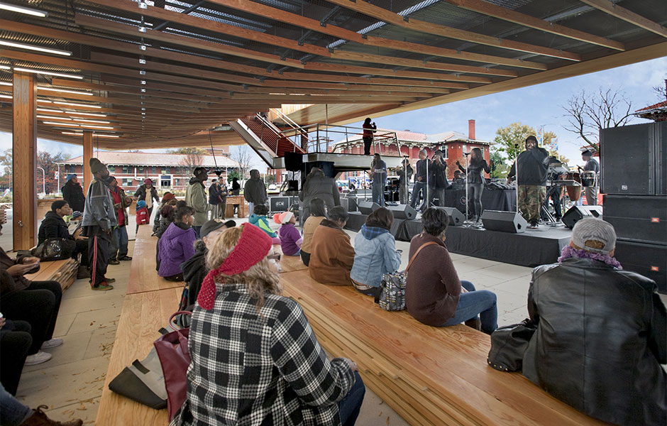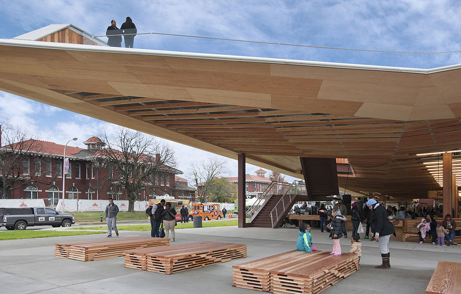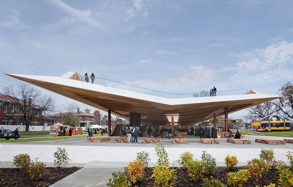 PAVILJONGEN SAINT ELIZABETHS East Gateway, som invigdes i november 2013, beskrivs redan som en ikonisk byggnad. Washington dc har sedan invigningen fått en ny samlingsplats och är knutpunkten för en ny förbindelse mellan universitetssjukhuset Saint Elizabeths östra och västra campus. Den drygt sju meter höga träpaviljongen beskrivs av arkitektfirman Davis Brody Bond som en universalstruktur – den är skapad med hänsyn till de redan existerande, och förväntade, rörelserna över platsen.