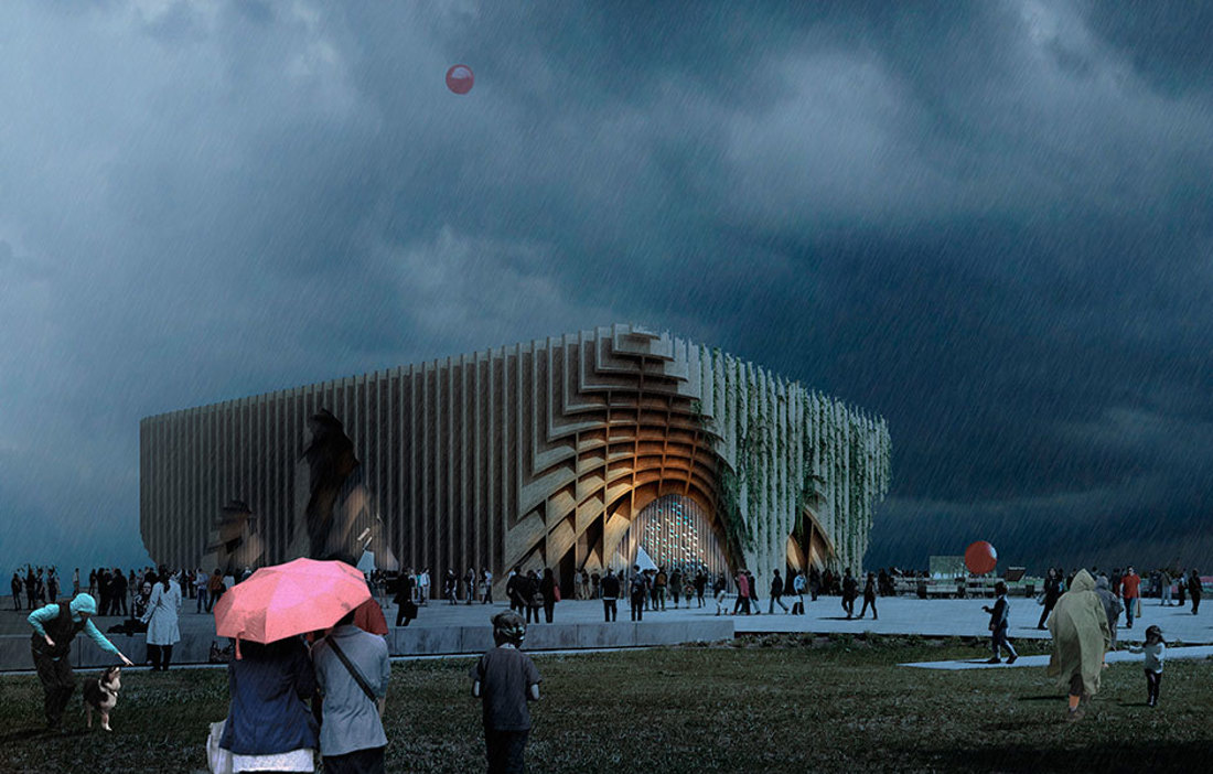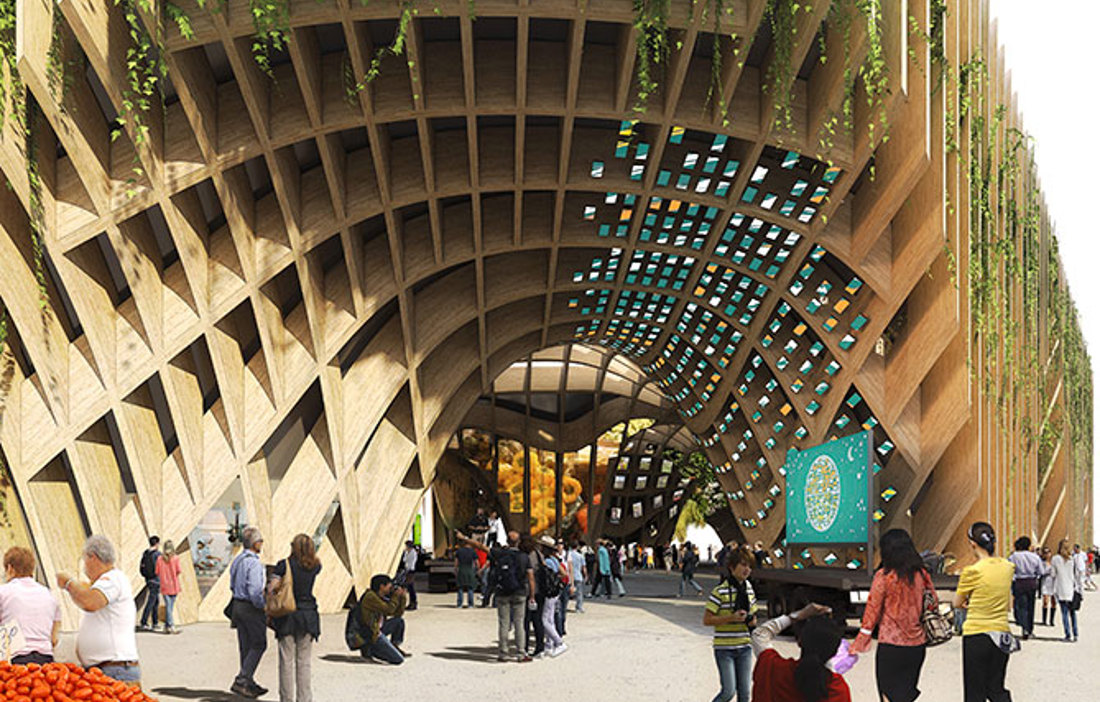 HUR KAN VI förse världens befolkning med hälsosam mat, i dag och i morgon? Frankrike satsar på att besvara denna viktiga fråga på världsutställningen Expo Milano 2015. Parisbaserade xtu Architects har låtit sig inspireras av de många matmarknader som finns i franska städer och kommer att presentera en plantbevuxen träpaviljong – en 3 592 kvadratmeter stor marknadsplats designad för att demonteras och återanvändas även efter Milano. Den bärande strukturen såväl som fasader, väggar och golv konstrueras av enbart trä.