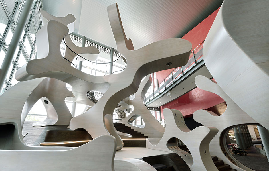 Genom att förvandla den tvådimensionella bilden av pet-symbolen, som är en av våra mest igenkända uttryck för återvinning, har J.Mayer H. Architects skapat en tredimensionell struktur som steg för steg gjorts mer och mer komplex.