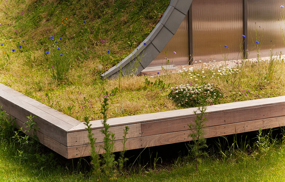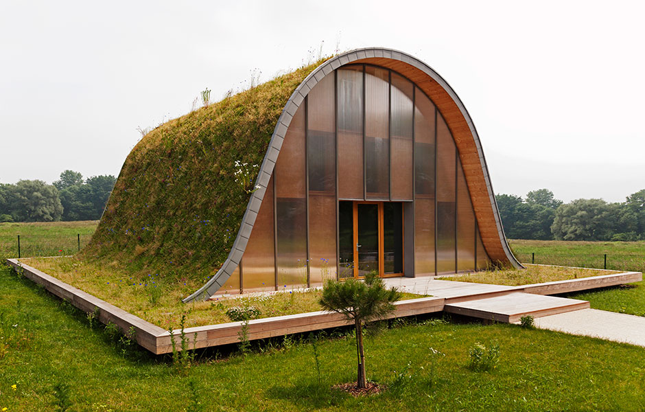 ETT LAGER AV gräs, örter och blommor pryder taket på detta puckelformade hus av arkitekten Patrick Nadeau. Han kallar sitt verk »La Maison-vague«, vilket kan översättas till ”Det vågformade huset”. Huset är beläget nära staden Reims i nordöstra Frankrike och är det första i ett projekt om totalt 63 experimentella bostäder i området.