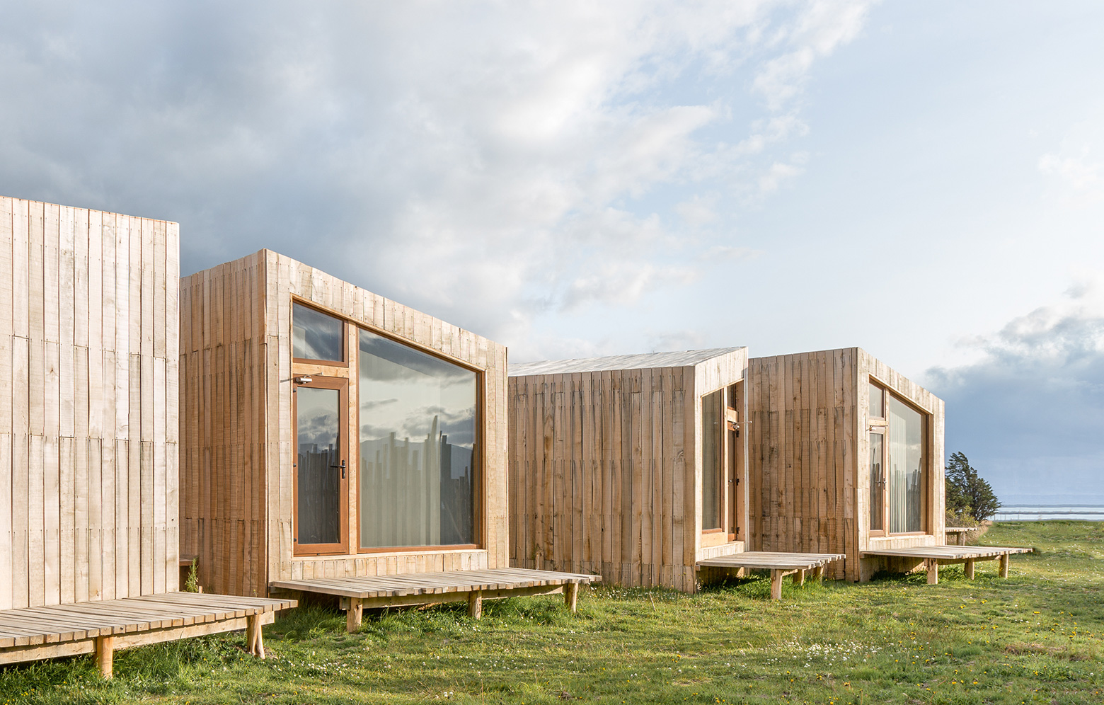 En ram av korslimmat trä, formad som en båge, har använts för att skapa den böjda profilen. Huset står i sin helhet på ett upphöjt trädäck som lyfter byggnaden från marken. Endast grunden är av betong. Dess termiska prestanda säkerställs av placeringen, vegetationen och av dubbla väggfasader. De yttre väggarna är gjorda av transparant polykarbonat och de inre väggarna av obehandlade furuplank. Det gröna sedumtaket skyddar från hetta och vinterkyla.«