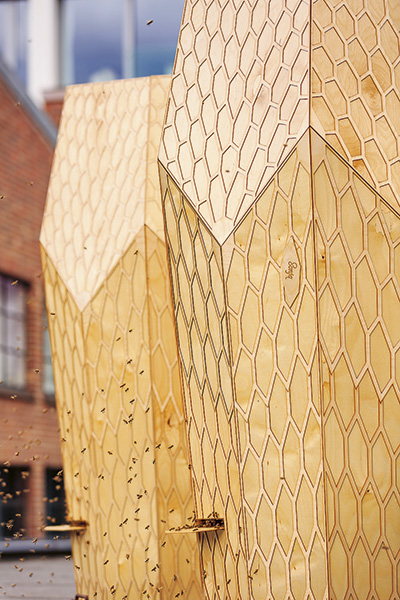 EN BIODLING MITT i city kan låta märkligt, men är verklighet i Oslo. Där har arkitektbyrån Snøhetta utformat en honungskakeformad bikupa med inspiration från riktiga bikupor. Arrangemanget ligger högst upp på taket i anslutning till en stor saluhall i Oslo, med närhet till såväl hallens restauranger som olika parker i den norska huvudstaden där bin kan hämta pollen och vatten.