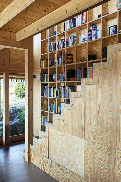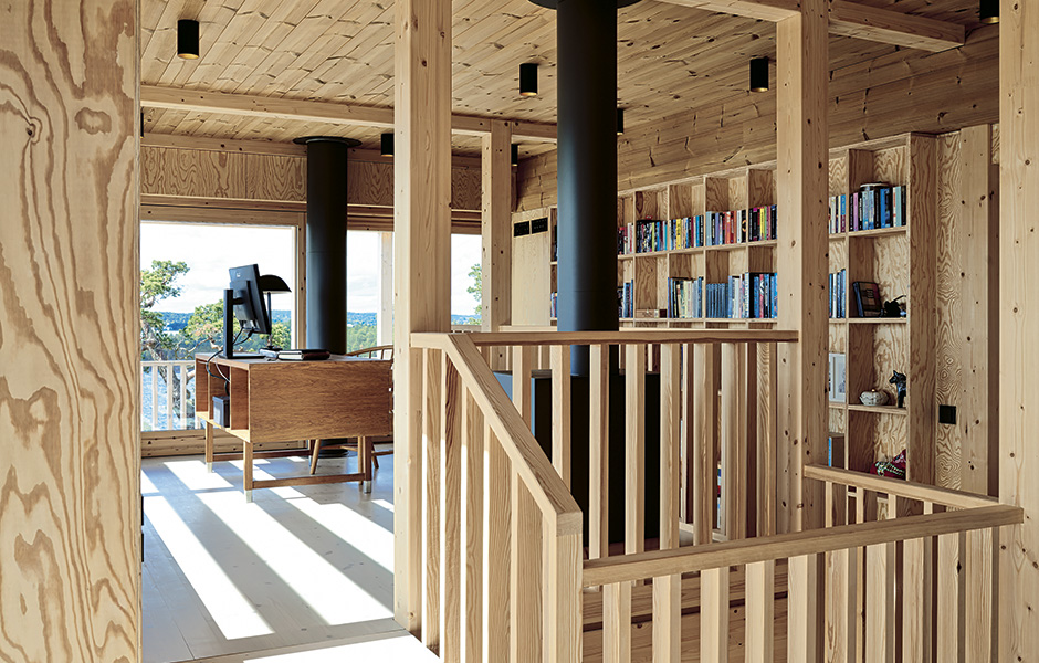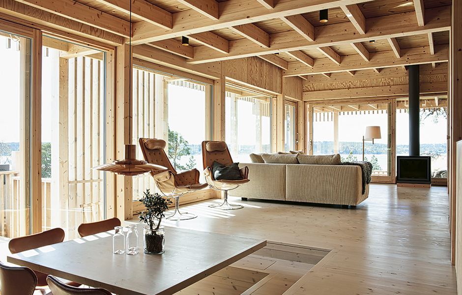 Limträ är en väldigt markant del av upplevelsen av huset då det är konstruerat med en synlig stomme. Varenda bjälke, varenda sekundär är synlig. Samtidigt förstärker stommen den labyrintlika känslan som skapar rum i rummen och framhäver funktioner, till exempel definierar köket. Den exponerade stommen skapar även stämning och skänker värme i huset.