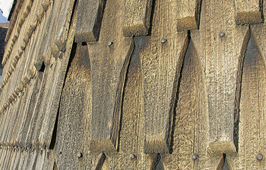 SPÅNTAK ÄR EN annan typ av takbeklädnad i trä som har en lång tradition i Sverige. De äldsta takspånen är de kluvna kyrkspånen som spräcktes fram för hand. På Skaga stavkyrka i Västergötland har man hittat furutakspån från 1100-talet.