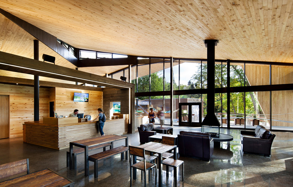 I KANADENSISKA MONT-TREMBLANT National Park ligger det prisbelönta naturcentret Centre de découverte du parc national du Mont-Tremblant. Den Montrealbaserade arkitektbyrån Smith Vigeant har vunnit pris för såväl bästa inredningsdesign vid Prix d’excellence cecobois 2014 som Sustainable Design Award vid Grand Prix du Design 2013.