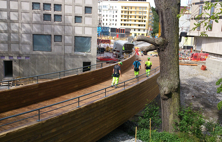 EN HUNDRAÅRIG EK stod i vägen för den planerade gång- och cykelbron i miljöstadsdelen Norra Djurgårdsstaden i Stockholm.