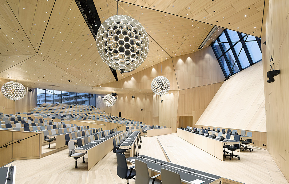 NĂR DE 900 delegaterna i FN-organet World Intellectual Property Organization, WIPO, kliver in i sin nya konferensanlĂ€ggning, tar de ocksĂ„ steget in i en nyskapande arkitektur, dĂ€r trĂ€ Ă€r det dominerande materialet. Vad kan vara mer passande för en organisation som sysslar med innovation och immaterialrĂ€tt?