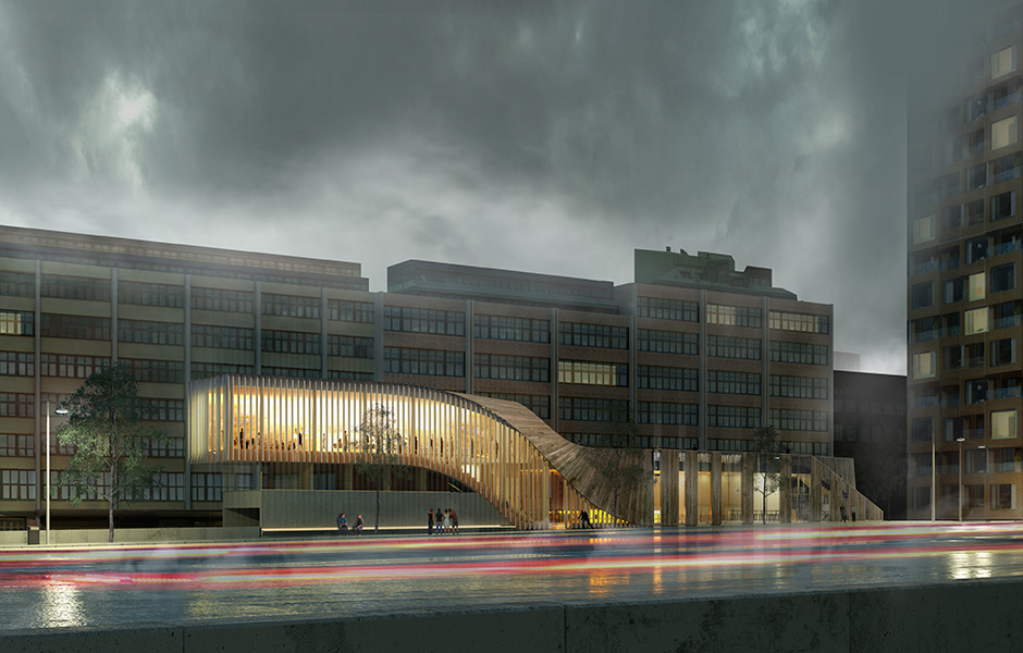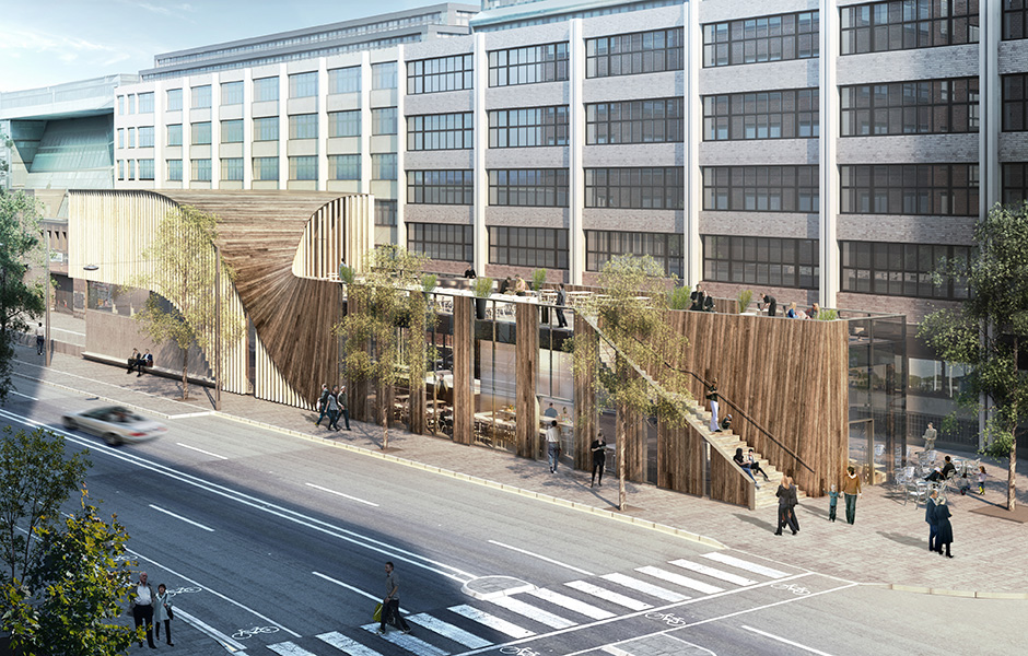 HÖSTEN 2016 INVIGS den här skulpturala symbolbygganden i Hagastaden i Stockholm, med syftet att bli en mötesplats för de som bor i, arbetar i eller besöker stadsdelen. Belatchew Arkitekter har ritat byggnaden som har det passande namnet Twist. Namnet anspelar på den vridna formen och på programmet som växlar mellan arbete och nöje, det enskilda och det kollektiva. Lättkonstruktionen i trä, med en fasad som impregnerats med Kebony, vrider sig mjukt från den ena våningen till den andra.