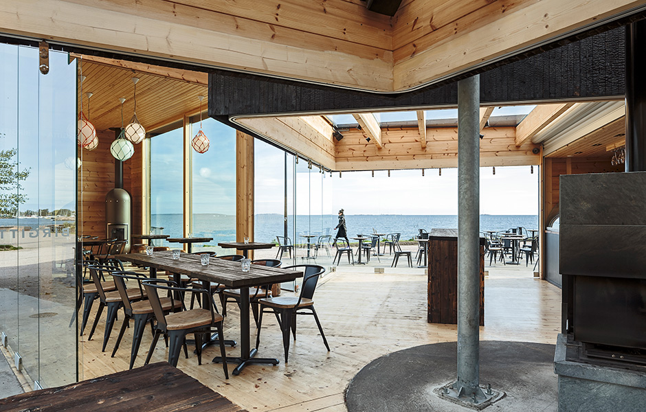 Caféets trästomme liknar en propeller, med tre olika höga sektioner, byggda i furu från närområdet. Propellerformen skapar även grunden för caféets tre sektioner, en serveringsdel, en loungedel och en del för toaletter. Skjutdörrar, som ramas in av limträbalkar, gör det möjligt att stänga av loungedelen under kyliga dagar. Caféet är endast öppet under vår, sommar och höst. Fasaden består av 50x50 mm furuplank och har en bränd yta som står emot hårt väder. Innerväggarna har byggts av obehandlat furu och terrassen av lärk.