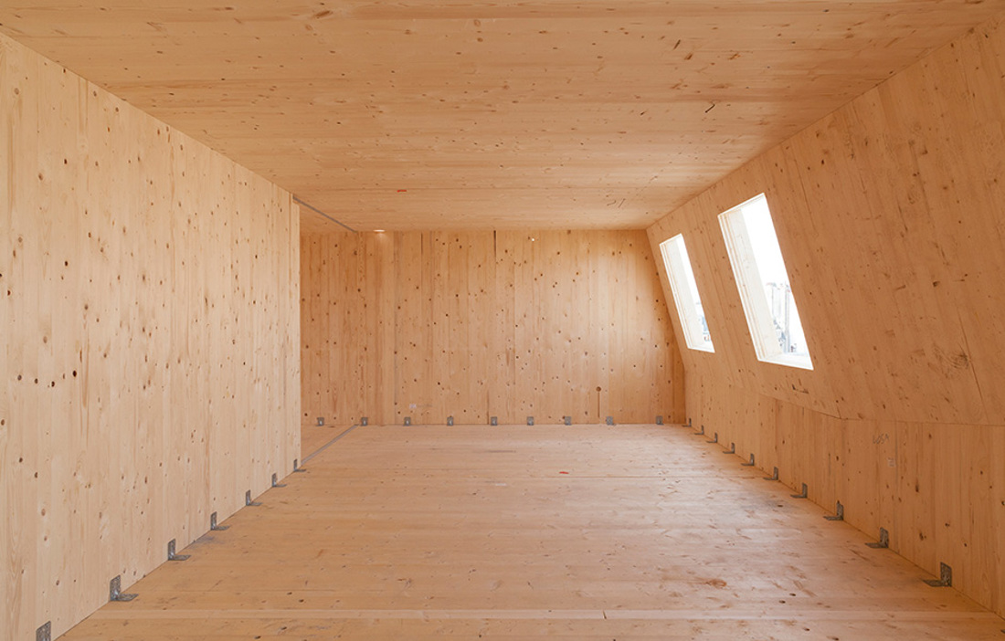 – Genom att använda korslimmat trä, kunde vi vara mycket effektiva i byggets inledningsfas och vi fick snabbt upp husets stomme. Det var viktigt eftersom byggplatsen var svåråtkomlig och vi hade en mycket begränsad yta att arbeta på. Dessutom fick vi en ren byggarbetsplats med lite byggdamm och låga nivåer av koldioxidutsläpp, beskriver Jean-Thibaut Bernard.