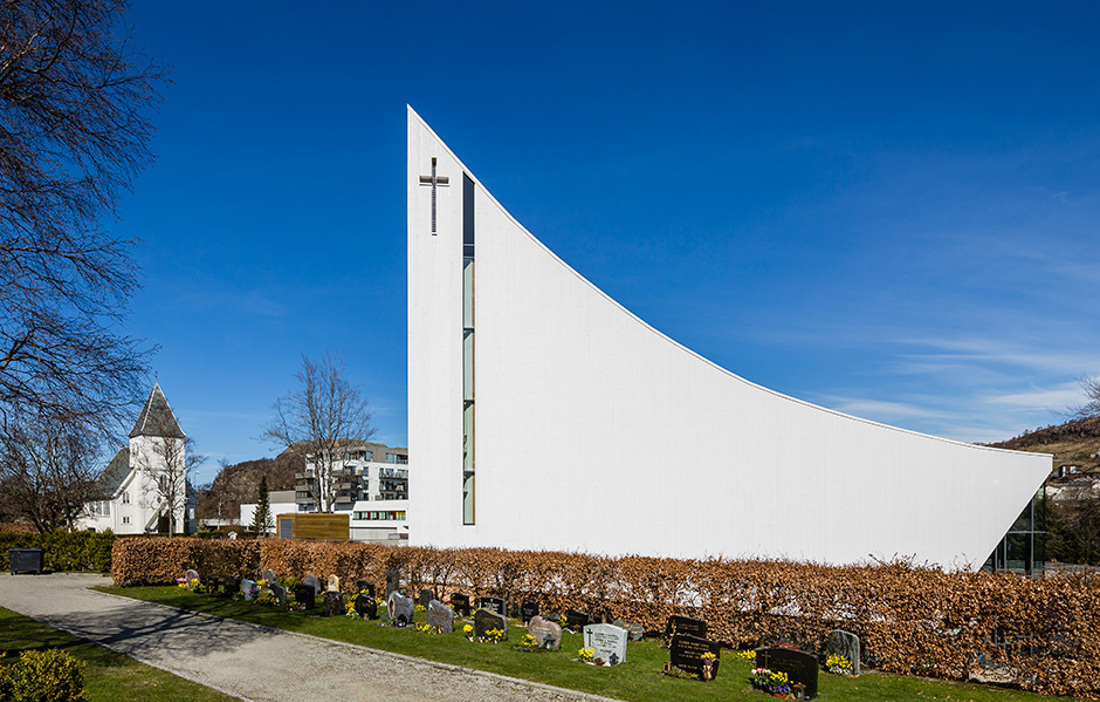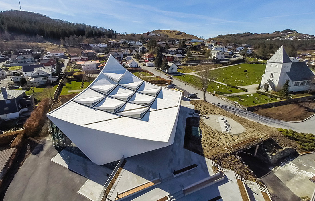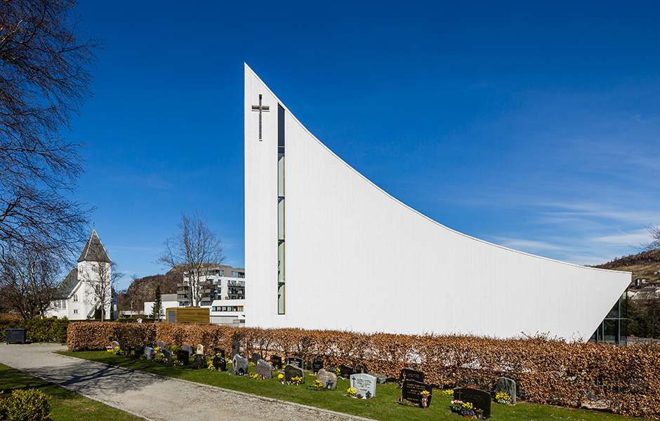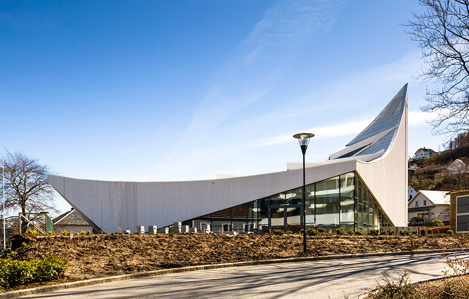 Nu har Ålgård och det hänförande landskapet i sydvästra Norge åter fått världens uppmärksamhet riktad mot sig. Den nybyggda Ålgård kyrka är ett arkitektoniskt konststycke som sedan invigningen våren 2015 blivit ett vackert, lågmält landmärke i trakten. På avstånd ser kyrkan ut som ett enormt tält, de vita väggarna och det lutande taket ger intrycket av en lätt, mjuk duk upphängd på stolpar. I ena änden av kyrkan ligger ingången och trapporna är symboliskt riktade ner mot byn. I den andra sträcker sig kyrkan, i en svag båge, upp mot himlen. I en enda dynamisk rörelse reser sig kyrkan ur landskapet, som en naturlig fortsättning på Ålgårds kullar och dalar. Bakom projektet ligger norska arkitektbyrån LINK arkitekter.