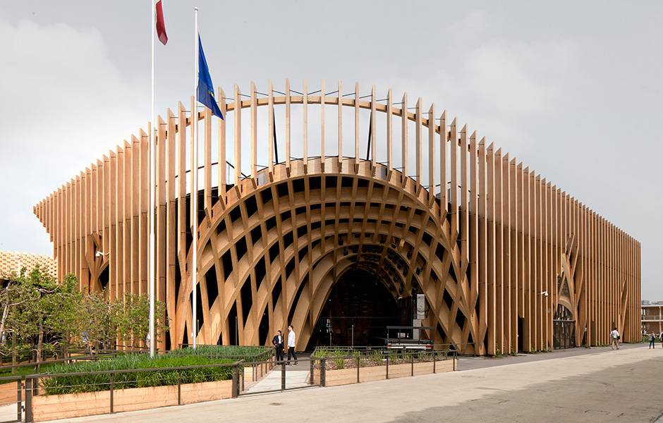 Japanske Atsushi Kitagawara har istället inspirerats av traditionella Kyoto-hus till en extremt jordbävningssäker konstruktion utan metalldelar, och med en vägg av saketunnor i entrén. Spanska arkitektbyrån B720 Fermin Vazquez Arquitectos bjuder en prefabricerad limträbalkspaviljong som enligt arkitekterna reducerat transportbehovet avsevärt och gett en flexibel lättmonterad konstruktion. Det jättelika växthuset har energieffektiv naturlig ventilation och polykarbonat istället för glas.