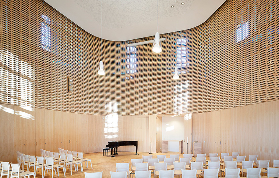 ÄR SVENSKA KYRKAN i Mölndal behövde ett nytt kapell till begravningsplatsen i Kållered föll valet på svensk furu. Egentligen är det fel att kalla byggnaden kapell, det rör sig snarare om en ceremonibyggnad, öppen för alla trosinriktningar. Den som tittar noga hittar en pil i mörkt trä, elegant infälld i stavparketten. Pilen pekar i riktning mot Mecka.