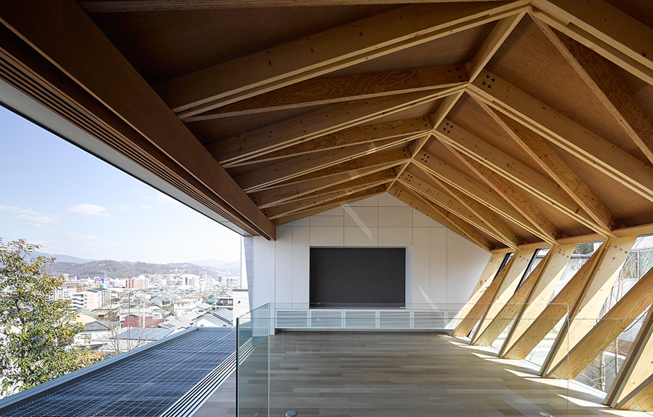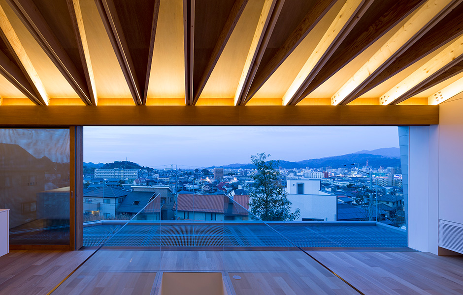 WRAP HOUSE STICKER ut där det ligger i ett tätt villaområde på toppen av ett berg i staden Matsuyama, södra Japan. Villan är ritad av det Tokyobaserade kontoret Apollo Architects och har en fasad som präglas av naken betong i kombination med jättetuja och galvaniserad stålplåt. Framförallt är det takkonstruktionen som ger huset sin karaktär.