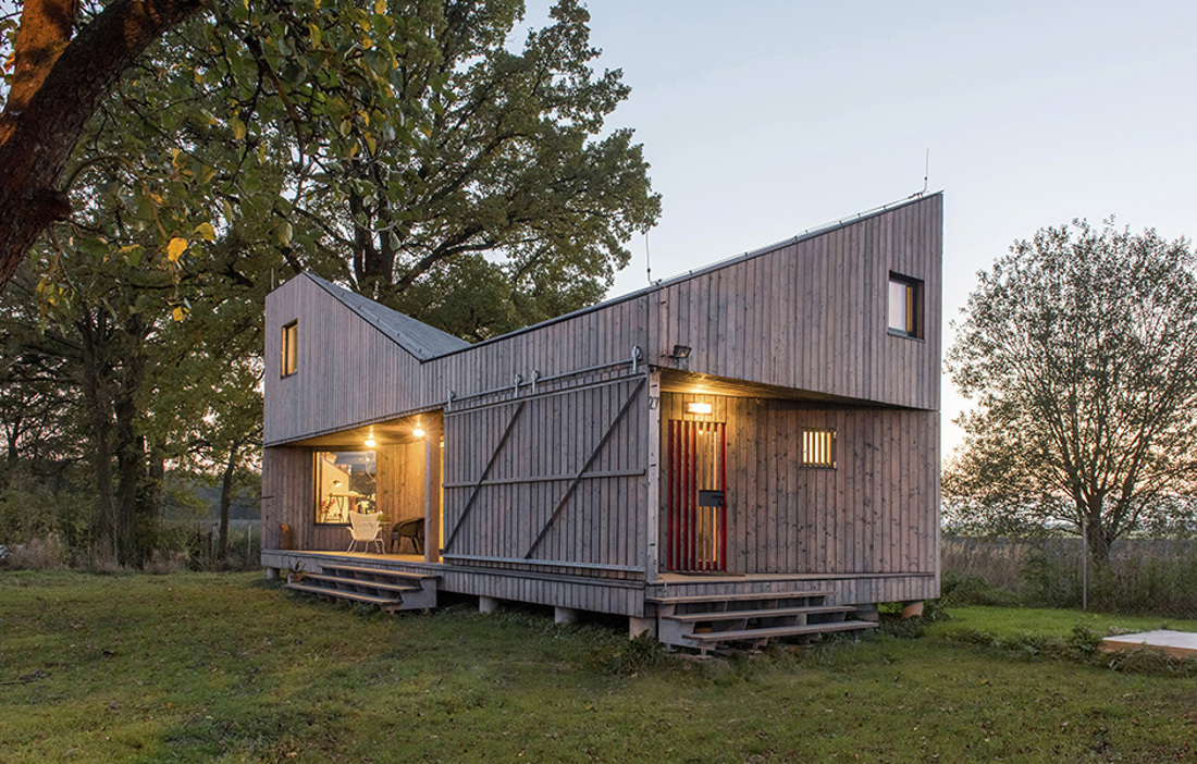 EN ANTHROPOD ÄR ett avlägset människoliknande rymdmonster i dataspelet »X-com Apocalypse«. När det tjeckiska arkitektkontoret ASGK fick i uppdrag att designa ett lågenergihus i utkanten av Lodin, en by i östra Böhmen, var det kundens fyraåriga son som gav instruktionen: rita en anthropod som lutar sig mot den stora eken mitt på tomten!